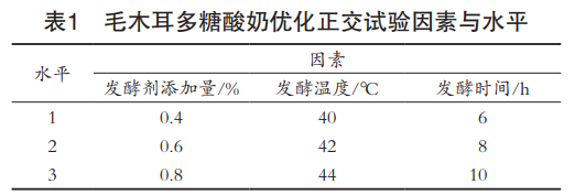 毛木耳多糖屬于酸性多糖,具有提高機體免疫 力、抗癌抑癌、抗氧化衰老、降低血糖、調(diào)節(jié)心臟功 能等功效,因此毛木耳多糖的綜合利用對毛木耳多糖 生物活性研究和產(chǎn)品開發(fā)具有重要意義。酸奶是以鮮牛奶為主要原料,利用嗜熱鏈球菌和 保加利亞乳桿菌等益生微生物,以益生菌發(fā)酵的方式 得到發(fā)酵型乳制品。發(fā)酵酸奶易于消化吸收、提高食 欲、促進腸道蠕動、有利于治療便秘。營養(yǎng)物質(zhì)豐 富,還可以增加人體免疫力,間接起到美白養(yǎng)護的效 果,因此發(fā)酵型酸奶受到大量消費者的喜愛。