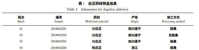 花椒毒酚( 批號: HX106886198) 、異紫花前胡內(nèi) 酯( 批號: HM048527198) 、水合氧化前胡素( 批號: HA061413198) 、白當(dāng)歸素( 批號: HB157470198) 、補 骨脂 素 ( 批 號: HP018120198 ) 、花 椒 毒 素 ( 批 號: HA061509198) 、佛手柑內(nèi)酯( 批號: HB204394198) 、 氧化前胡素( 批號: HA062924198) 、歐前 胡 素( 批 號: HI041232198 ) 、 異 歐 前 胡 素 ( 批 號: HI041233198) ,以上對照品均購自寶雞辰光生物科 技有限公司,純度 > 98% 。甲醇( 色譜純,美國 Fisher 公司) 、乙腈( 色譜純,美國 Fisher 公司) ,其余為 分析純; 水為屈臣氏純凈水。本實驗搜集了四川、杭 州、安徽、河南、河北等地的白芷藥材樣品,信息見表 1,經(jīng)陜西中醫(yī)藥大學(xué)陜西省中藥資源產(chǎn)業(yè)化協(xié)同創(chuàng) 新中心劉世軍副教授鑒定,為白芷 Angelica dahurica ( Fisch. ex Hoffm. ) Benth. et Hook. F 或 杭 白 芷 A. dahurica( Fisch. ex Hoffm. ) Benth. et Hook. F. var. formosana ( Boiss. ) Shan et Yuan 的干燥根,其中 S1、 S3、S4、S7 批次為硫磺熏蒸過的白芷樣品,S2、S5、 S6、S8、S9、S10 批次為無硫磺熏蒸過的白芷樣品。